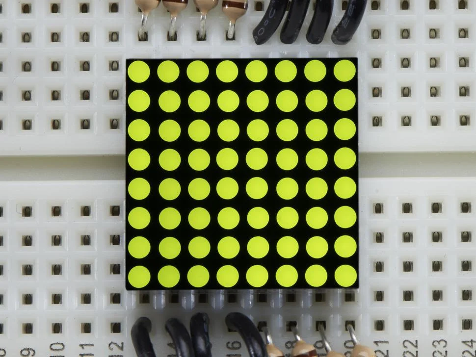 \\u00C8 dotato di 64 LED giallo-verdi brillanti disposti in una matrice 8×8, alloggiati ordinatamente in un corpo compatto in plastica. Ogni lato della matrice \\u00E8 dotato di 16 pin, offrendo ampia connettivit\\u00E0 grazie alla spaziatura di 0,1 pollici, rendendolo perfetto per una facile integrazione su breadboard.
