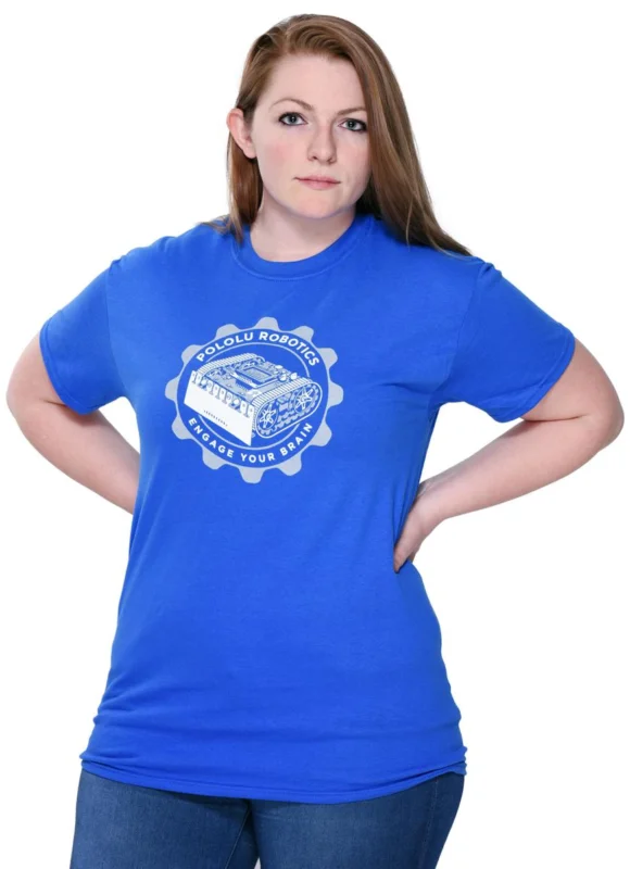 Il colore blu royal della camicia risalta, rendendola una scelta perfetta sia per le occasioni casual che per quelle speciali. Il design del robot Pololu Zumo aggiunge un tocco divertente e creativo alla maglietta, rendendola una delle preferite tra i giovani appassionati di robotica.