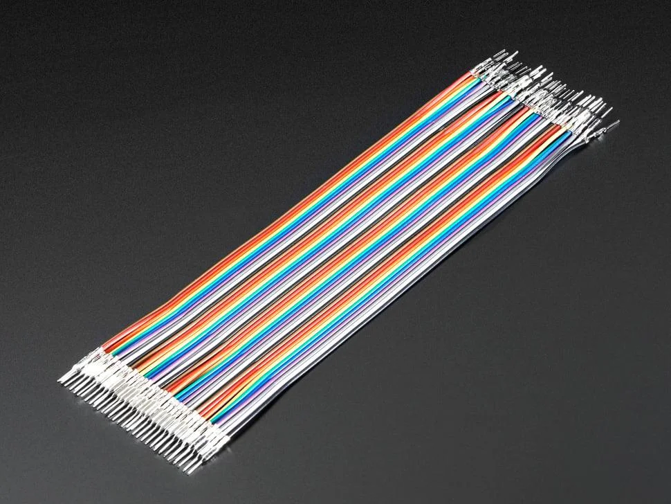 I cavi jumper maschio/maschio grezzi, progettati per realizzare set di cavi jumper personalizzati e cablaggi senza soluzione di continuit\\u00E0, misurano poco pi\\u00F9 di 150 mm (6 pollici). Disponibili in strisce da 40, includono 4 pezzi per ciascuno dei dieci vivaci colori.