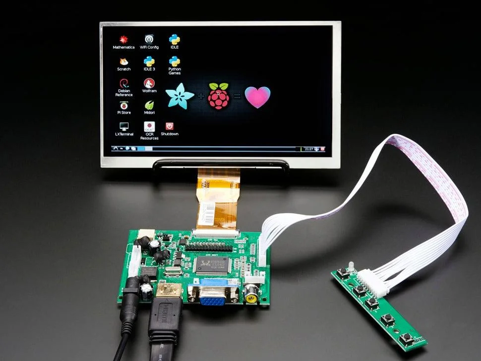 Adafruit HDMI 4 Pi: Display da 7″ senza touchscreen 1024×600- HDMI/VGA/NTSC/PAL Vendita Finale
