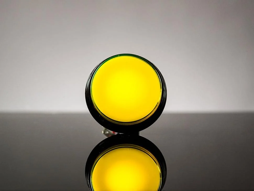 Con una copertura piatta in plastica gialla e un anello di fissaggio nero, aggiunge un tocco vivace al tuo progetto. La funzione LED opzionale illumina il pulsante, alimentandolo fino a 12 V grazie alla resistenza integrata. Tuttavia, la sua profondit\\u00E0 ridotta si traduce in un’illuminazione non uniforme sulla superficie del pulsante.