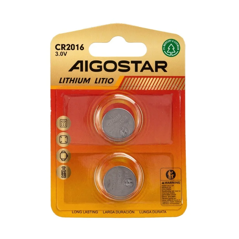 Batteria a Bottone CR2016 3V 2 PZ Aigostar