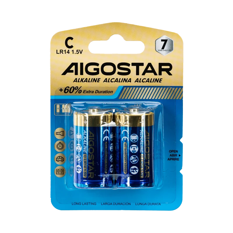 Batterie Aigostar C Mezzatorcia 1.5V Confezione da 2 Pile Alcaline Soddisfatti O Rimborsati