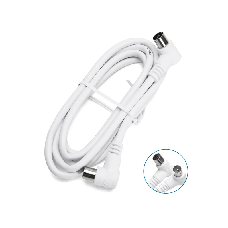 Il cavo per antenna TV coassiale RF con connettori maschio e femmina da 9 mm, dalla lunghezza di 3 metri e di colore bianco, consente di veicolare il segnale dell’antenna ai vari televisori dell’abitazione.