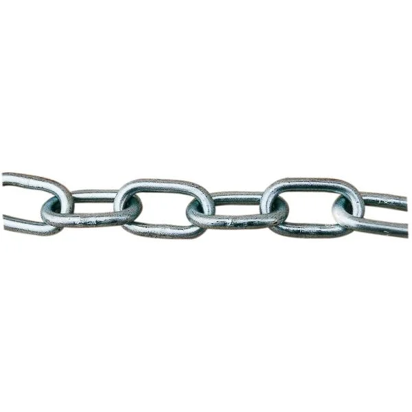 Catena standard piatta, parallela, zincata galvanizzato e cromato, per scopi tecnici e fissaggi. Non utilizzare come catena di carico. I limiti di sollecitazione sono valori indicativi. Le catene non sono state verificate.