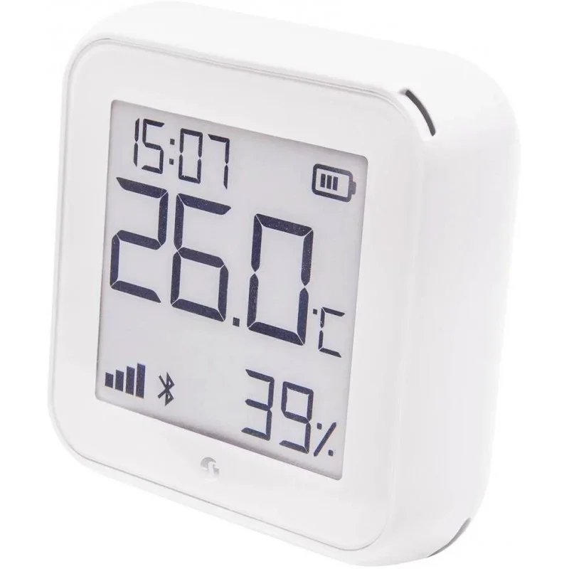 - Per una maggiore praticità, il sensore è dotato di un display e-paper a basso consumo energetico e di un orologio integrato. Queste funzionalità aggiuntive offrono una facile visualizzazione dei dati di temperatura e umidità e una maggiore durata della batteria.