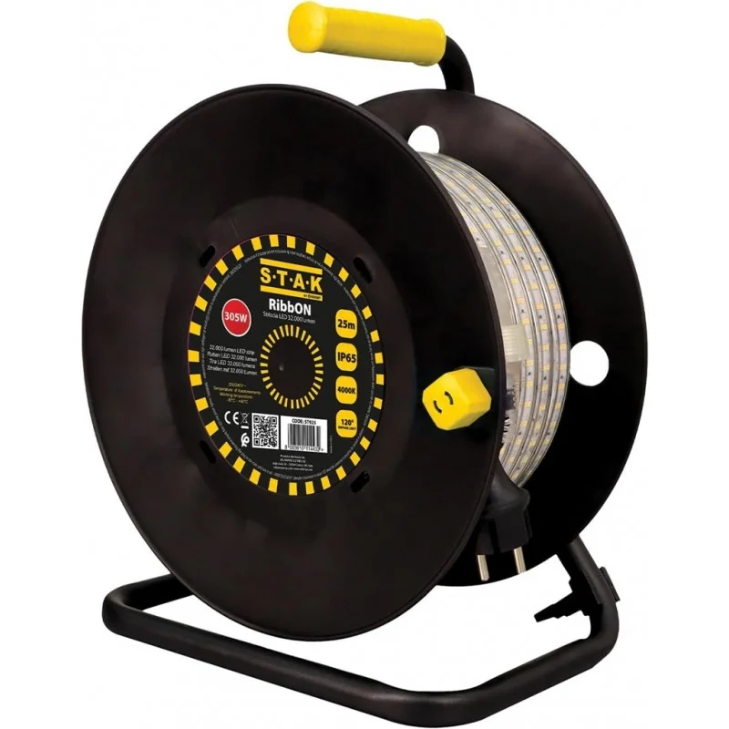 STAK RibbON Striscia LED 25 Metri con Avvolgitore, 32.000 Lumen, Luce Naturale 4000K, IP65 , Flessibile e Impermeabile per Uso Professionale in Cantiere e Esterni.