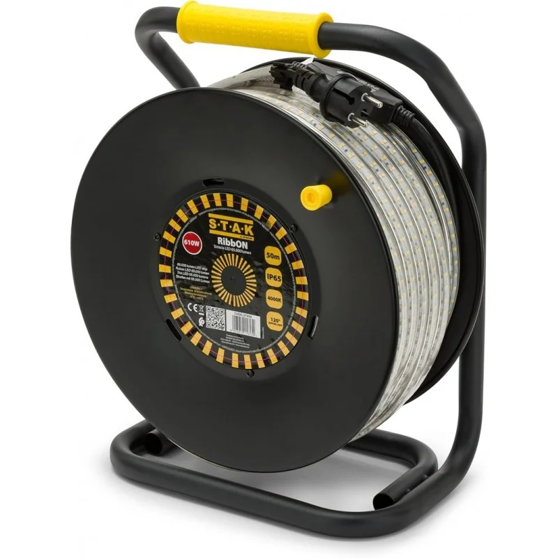 STAK RibbON Striscia LED 50 Metri con Avvolgitore, 65.000 Lumen, Luce Naturale 4000K, IP65 , Flessibile e Impermeabile per Uso Professionale in Cantiere e Esterni.