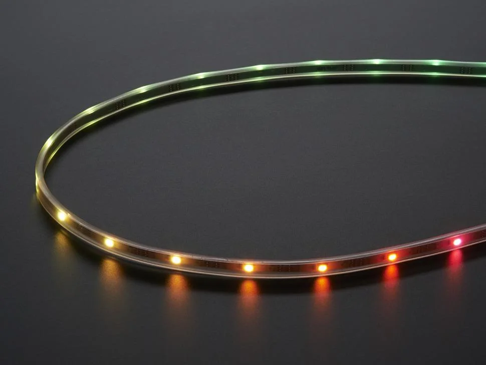 Cos\\u00EC sottili. Cos\\u00EC mini. Cos\\u00EC minuscoli. Questa \\u00E8 la versione \\”sottile\\” delle nostre classiche strisce NeoPixel. Con 30 Mini LED pixel indirizzabili digitalmente al metro, sono incredibilmente convenienti e misurano solo 7,5 mm di larghezza, o 5 mm senza involucro. Progettati su un PCB flessibile bianco, sono tecnicamente identici alla variante nera da 30 LED/metro, ma presentano una maschera di colore diverso.