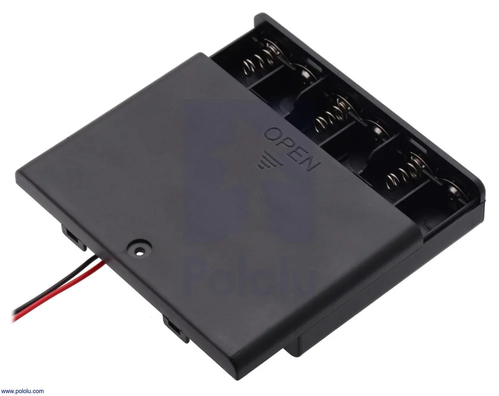 Il portabatterie Pololu 6-AA \\u00E8 una soluzione compatta e sicura per le tue esigenze di alimentazione. Questo portabatterie incluso \\u00E8 progettato per contenere in modo sicuro sei celle AA. Il supporto \\u00E8 dotato di un coperchio scorrevole che scatta in posizione, fornendo una custodia completa e protezione per le batterie. Inoltre, include un interruttore integrato che offre la comodit\\u00E0 di aprire e chiudere il collegamento elettrico tra le batterie e i cavi del supporto.