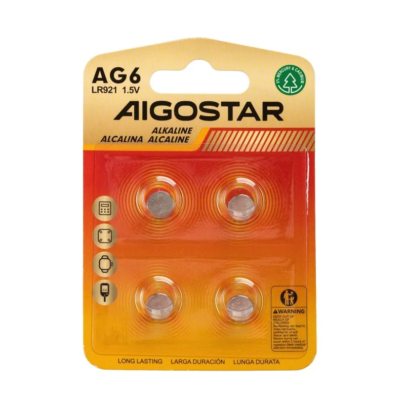 Batteria a Bottone AG6 LR920 1.5V 4 PZ Aigostar